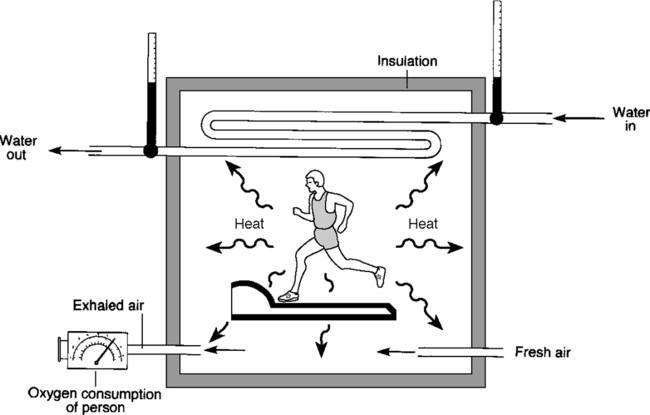 Om energie ergens uit te onttrekken, moeten we het verbranden en daar is zuurstof voor nodig. Professor Wilbur Atwater vond in de vorige eeuw de respiratie calorimeter uit. Deze calorimeter maakte het voor het eerst mogelijk om in een gesloten kamer zuurstofverbruik te meten, zodat naar aanleiding daarvan berekend kan worden hoeveel energie er werd omgezet. Bij energieverbruik komt warmte vrij. Als je die warmteproductie meet, kun je daaruit het energieverbruik berekenen. Bij deze methode moet de meetkamer wel erg goed geïsoleerd zijn en het vergt daarnaast veel tijd aangezien de proefpersoon lang in de ruimte moet zitten.